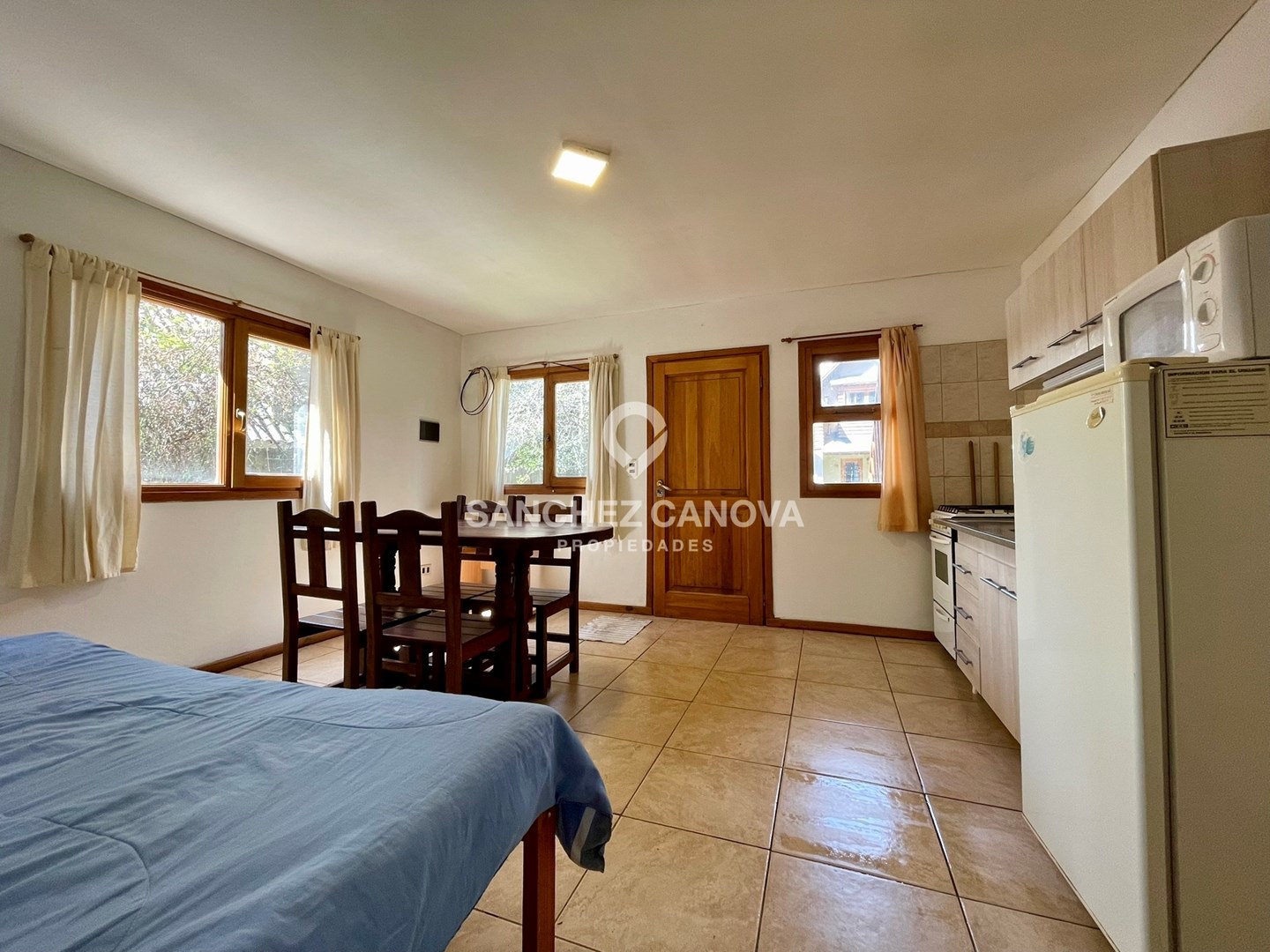 Alquiler permanente - Excelente departamento 2 ambientes en Melipal Moderno y luminoso, se entrega equipado tal como se ve en las imágenes. Planta baja al contrafrente. Ubicación privilegiada: sobre Av. Boock, a solo 200 mts de Av. Bustillo y 400 mts de Av. Pioneros. Cercanía inmediata a principales comercios y a 10 minutos del centro de Bariloche. Distribución y comodidades: - Living comedor con cocina integrada y muebles bajo mesada. - Dormitorio amplio con placard (opcional). - Baño completo con bañera. - Espacio de estacionamiento descubierto dentro del complejo. - Parque con parrillas de uso común. Servicios y gastos incluidos en expensas (estimativas): agua, gas, luz, mantenimiento, cable y municipal. Calefacción por tiro balanceado. Ideal para quienes buscan confort, practicidad y una excelente ubicación en Bariloche. . Martillero y Corredor Inmobiliario Pedro Sanchez Canova Mat. Nº 345 RP 21 Fº 424 TºII