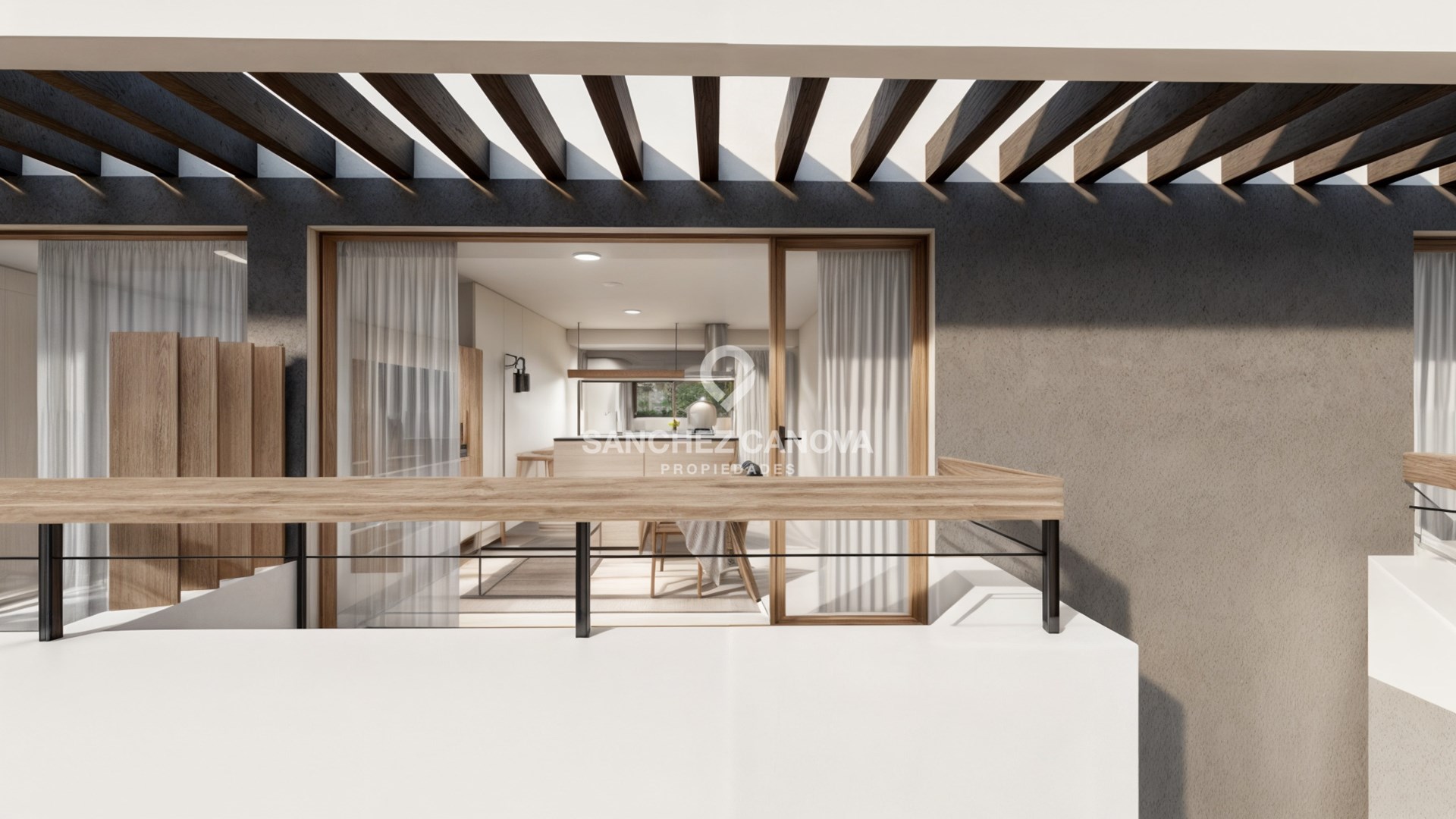 - Barandas de madera con parantes de hierro